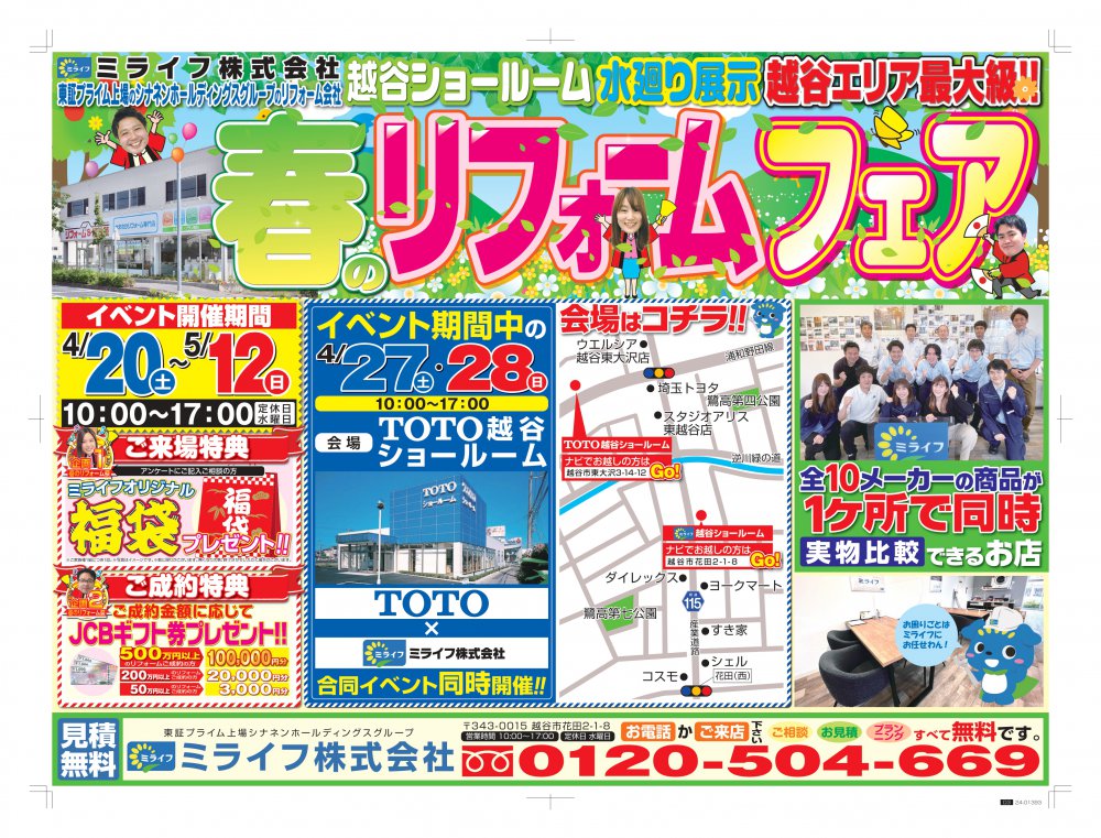 「春のリフォームフェア」をミライフショールームの各店舗で開催いたします。