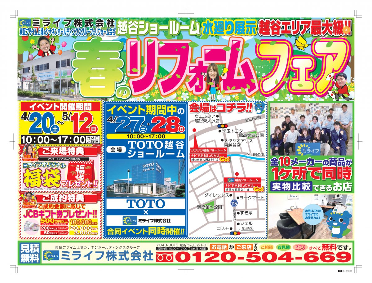 また、イベント期間中の4/27(土)・28(日)の2日間限定でTOTOと合同イベントも同時開催いたしますので、TOTO商品をご検討の方は是非TOTO越谷ショールームへお越しください!