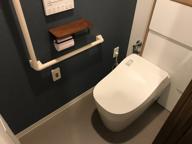 トイレのリフォームをさせて頂きました。 ・トイレ パナソニック/アラウーノ アラウーノは洗剤を加えモコモコの泡で流します。 それにより尿はねを防ぎ、日ごろのお手入れを楽にしてくれます。 内装も壁にアクセントを入れることで、スタイリッシュな空間に仕上がりました。 毎日使うトイレだからこそ、より過ごしやすい空間にしたいですよね。