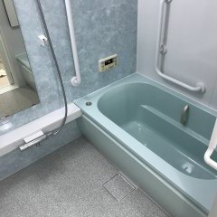 元は在来のお風呂の為、浴槽が狭くなってしまっていましたが、ユニットバスに交換し浴槽が広がりました!