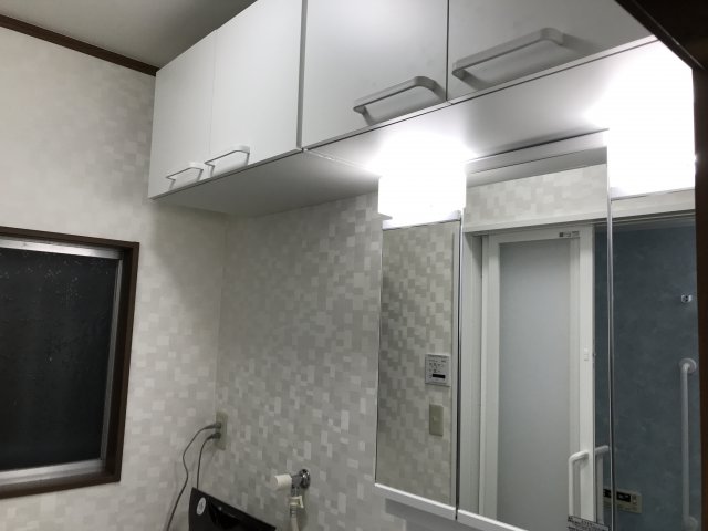 ウォールキャビネットもつけ、あいた空間を有効活用しました☆