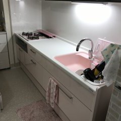 キッチンと浴室のリフォーム工事をさせて頂きました。 ・キッチン トクラス/Bb カウンターとシンクの継ぎ目がなくお掃除がらくです。 ピンクのシンクでかわいらしキッチンに仕上がりました。 ・浴室 TOTO/WYシリーズ ほッカラリ床で冬場は温かく、夏は乾きやすい床で快適に過ごせます。 鏡も大きく、高級感がありますね!