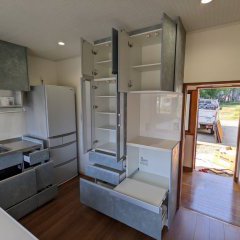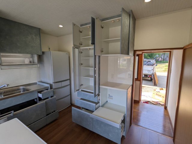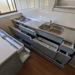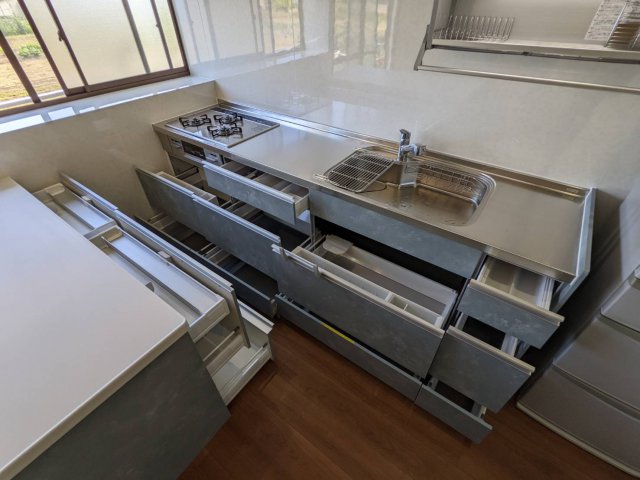 キッチン本体はクリナップの超人気キッチンSTEDIAを選択、内部はステンレスで作られており清掃清潔性は最高峰、3段引出しで収納力も写真の通りです♪