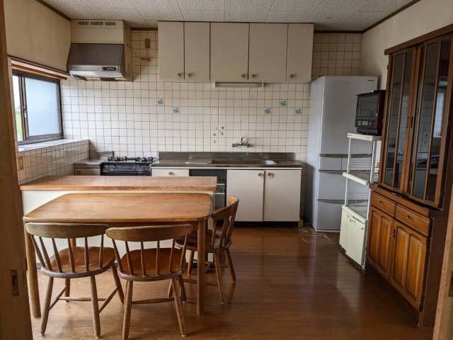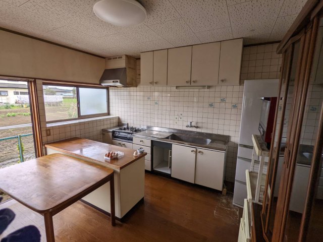 既存キッチン解体後は、タイルをすべて剥がしてのキッチン下地工事