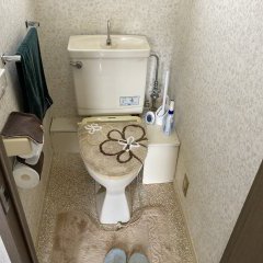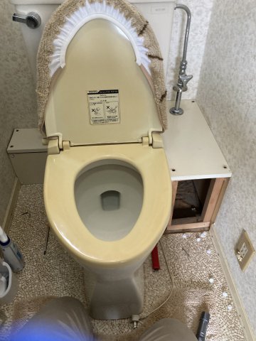 既存トイレは便器後方に排水管を接続して排水する、床上排水タイプでした。