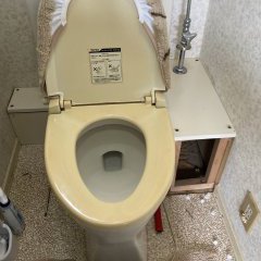 これを解消するべく既存トイレ撤去後は、BOXも解体し、床を開口して排水管と給水管を切回して床排水タイプのトイレが設置出来るようにしました。