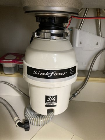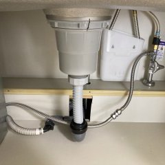 壊れて未使用のディスポーザーを撤去して、排水トラップに交換。