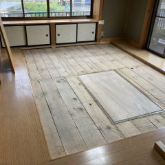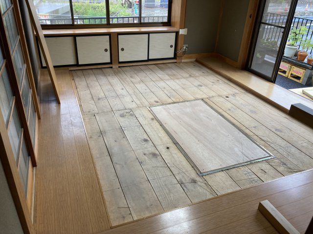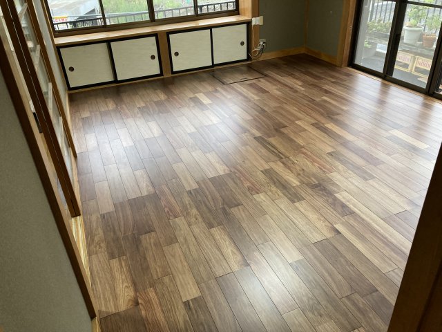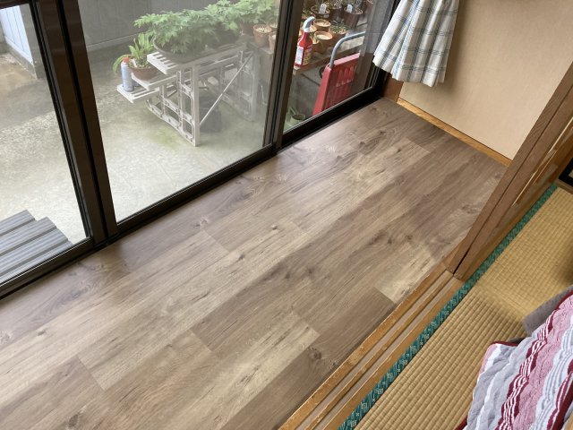 和室床は根太調整をして、合板を捨て貼りをして、PanasonicベリティスフロアーWを施工しました。