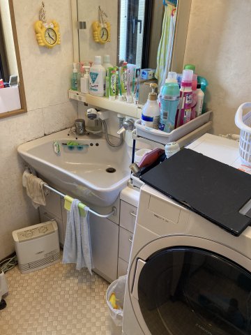 洗面化粧台はお風呂とは違ったメーカーで、化粧鏡上部にルームヒーターのついたタカラスタンダードのファミーユ!
