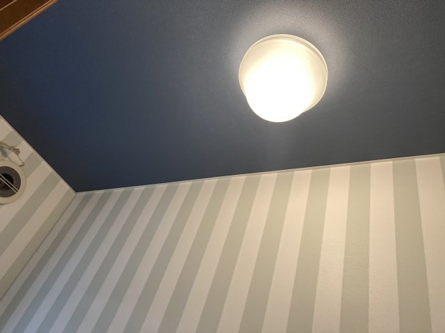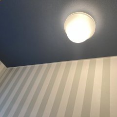 ストライプのクロスと天井に青のアクセントを入れることで、爽やかで清潔感溢れるトイレ空間に変身しました。