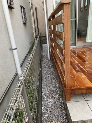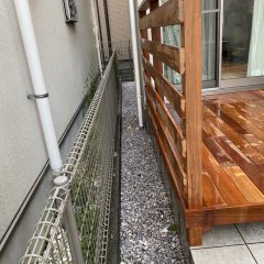 お子様がまだ小さく、足を踏み外して落ちてしまわないように、高さ1100㎝、長さ2400㎝のフェンスを設けました。これで安心です。