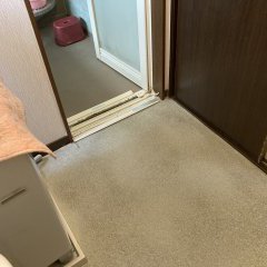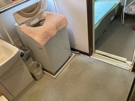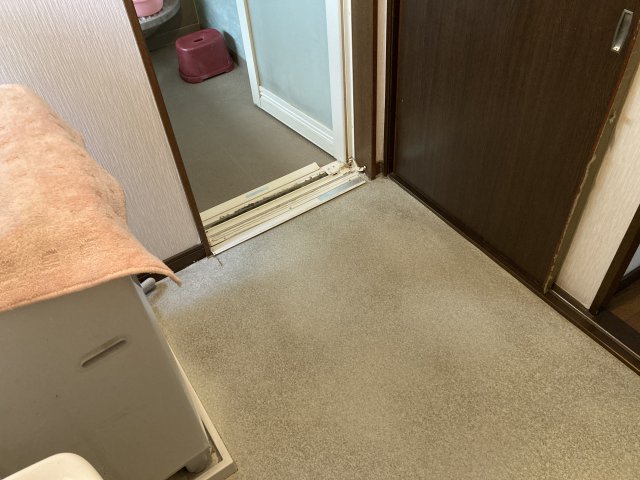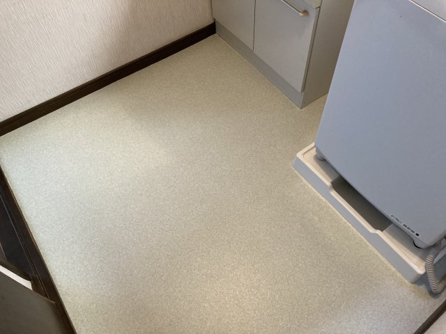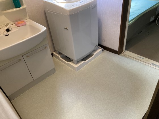 水を含んで劣化している部分の根太と下地を交換し、クッションフロアの張り替え工事を行いました。