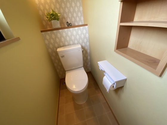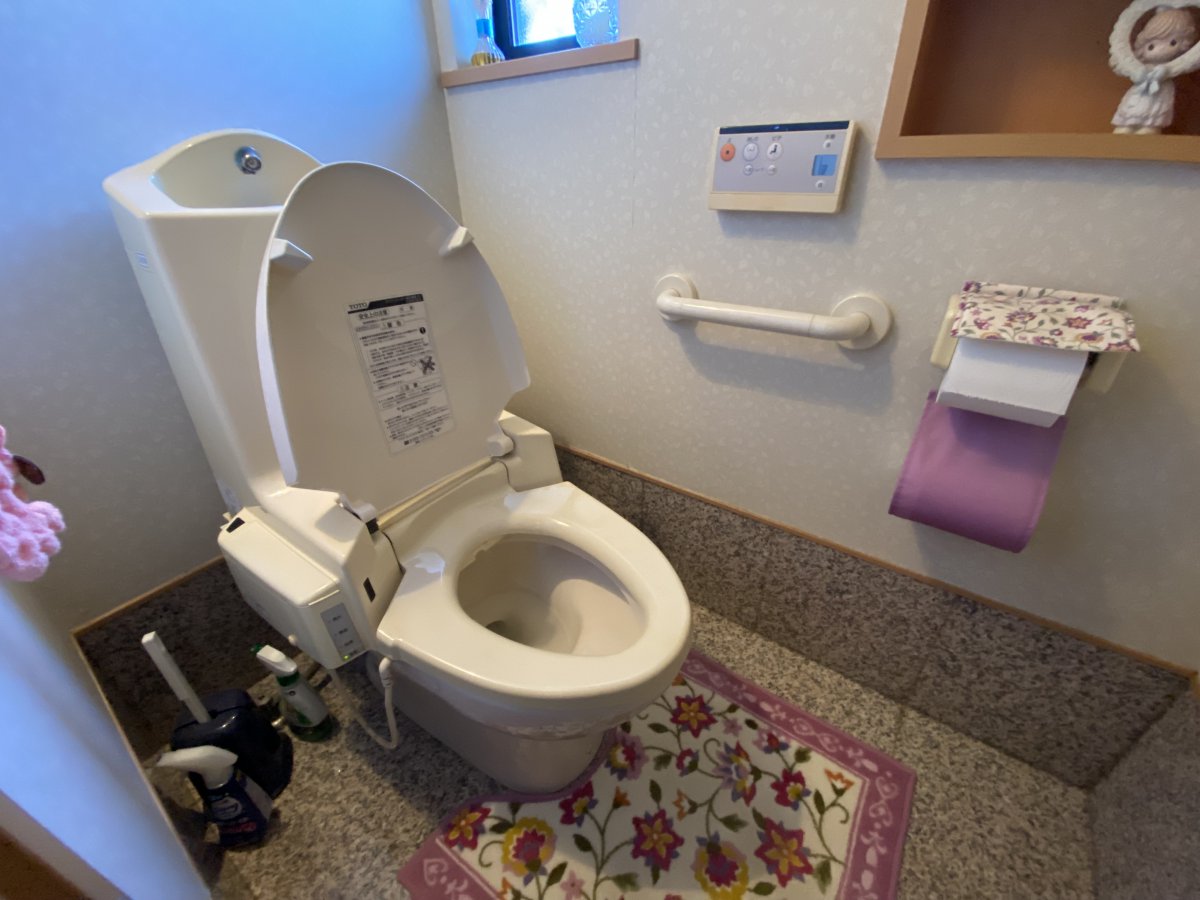 ★トイレ ZJ/TOTO ピュアレストQR/TOTO トイレ2台の交換工事を行いました。 フローリングは色むらやシミが気になるということでしたので、床補修を行い、水に強いクッションフロアを張りました。