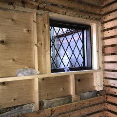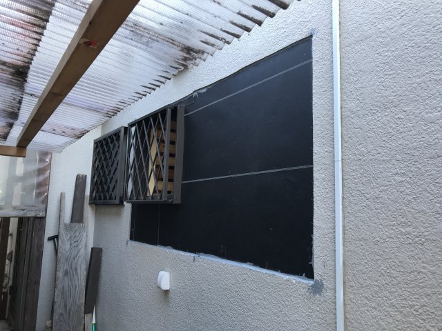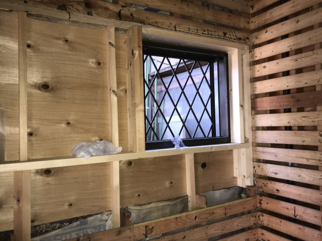 今回は大きい窓を小さい窓に変更の為 面格子付引き違い窓の新設工事等 職人さんの技が際立ちました。(*^-^*) 凄い‼