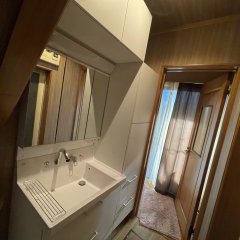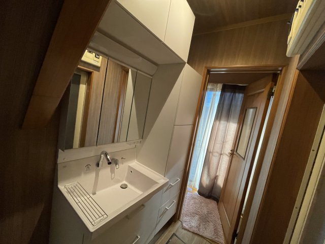 洗面はリクシルのピアラを取り付けました。 ハイバックタイプで、お掃除が楽になりました☆ ヒビが入ってしまっていた浴室ドアの交換もし 浴室まわりが快適になりました!