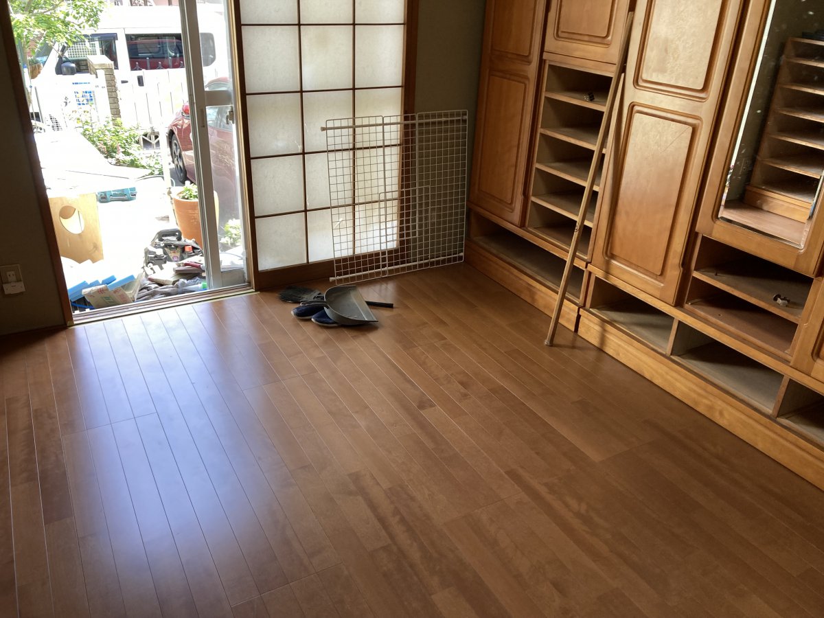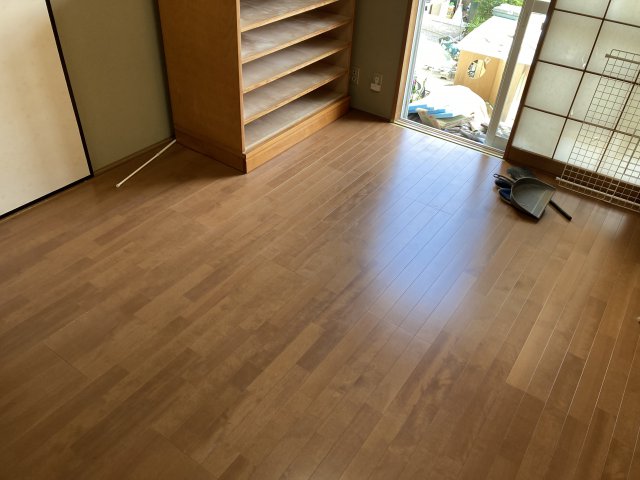 廊下もフローリングが老朽化していたので、畳の部屋と合わせて上張りをしました。