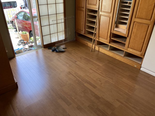 床が明るい色になったので、不思議と空間が広く見えるとお客様にも喜んで頂けました☆