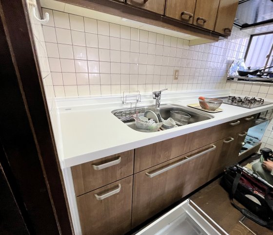 既存の設備を活かしながら(レンジフード・コンロ・吊戸はそのまま) 使い勝手を今よりもぐんと向上させるべくキッチンリフォームを致しました。 活かせる設備は最大限活かす!! 実際に使ってみるのが楽しみ!とご満足していただけました。