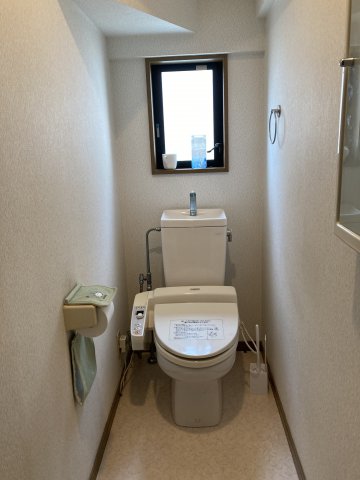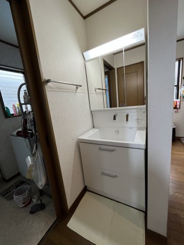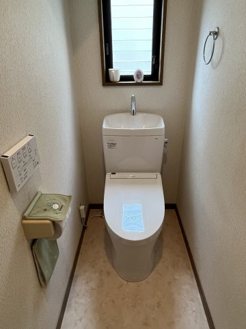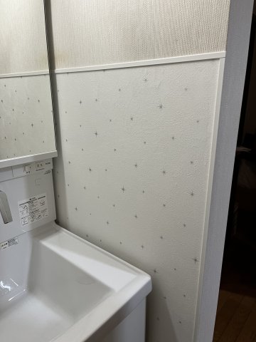 ★トイレ ピュアレストQR/TOTO ★洗面台 サクア/TOTO 内装はトイレ床のクッションフロアと洗面台左右のクロス張替を行いました。 シンプルなモールディングで、壁紙の可愛らしさが引き立ちます。
