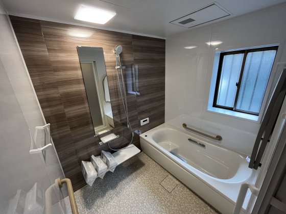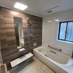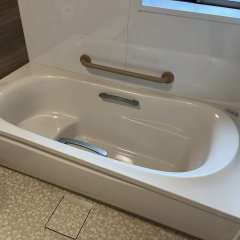 TOTO サザナというタイプのシステムバスで特徴として 床が畳のような柔らかさになっています。 水はけも良く寒さも遮ることが出来ます。 浴槽も高断熱浴槽を採用し暖かさにこだわったお風呂になりました。 ゆったり過ごせる浴室になりました。 すてきなバスタイムをお過ごしください。