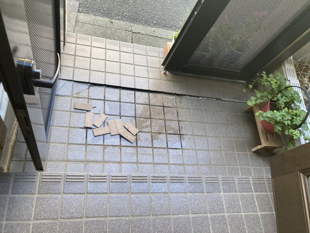 今回は沈んだ部分のタイルのみはがし、コンクリートでしっかり補強をいたしました!