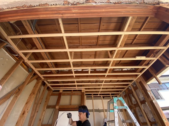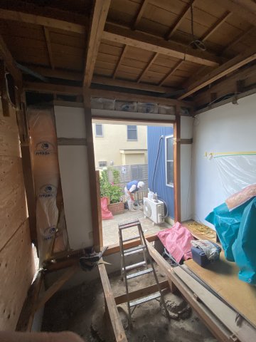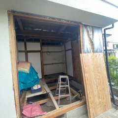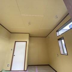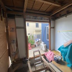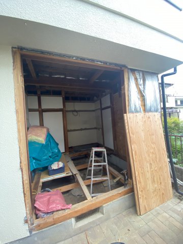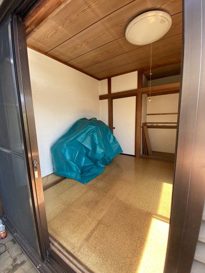 既存押し入れ・床全体解体撤去後⇒フローリング貼り・天井クロス張替え・壁モルタル塗り補修他