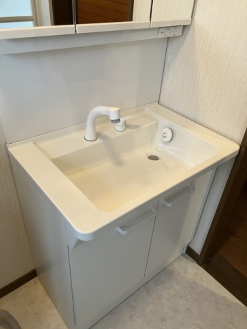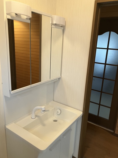 戸建て住宅の2階に設置させていただいた洗面化粧台です。
