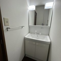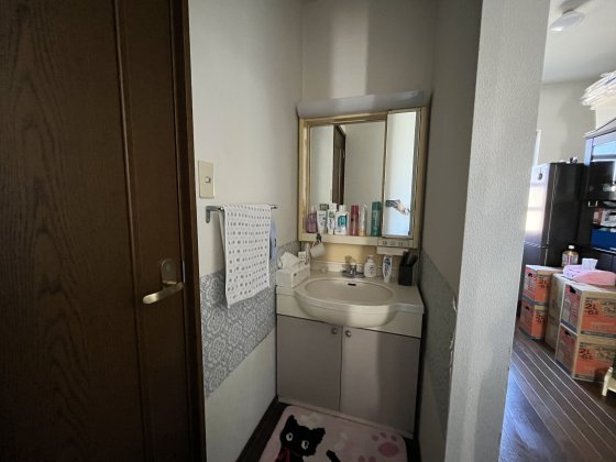 埼玉県越谷市、築25年ほどの戸建て2階の洗面台交換工事です。