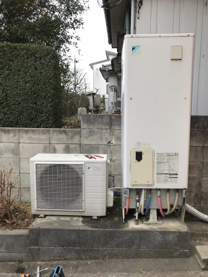 浴室が2階にあり給湯圧力が弱いという相談を頂いていたので、ダイキン製のパワフル高圧給湯タイプを設置させて頂きました!