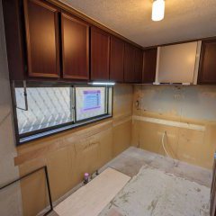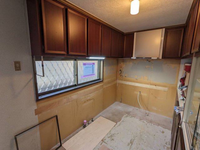 既存もキッチンパネルでしたが、出始めのキッチンパネルだったこともあり、なかなか外れないし…少し手間がかかった現場でした。