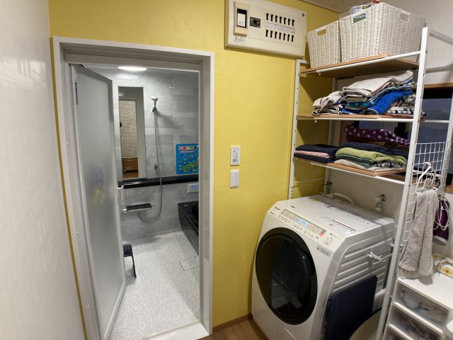 小さなお子様がいらっしゃるお客様で、元気が出る黄色のアクセントクロスや、洗面化粧台脇はシンプルで周りと調和しやすく拡がりを感じられる白いタイル調のものなどを採用されており遊び心満載でした。うん、思い出のある施工現場でした!