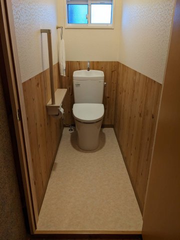 トイレもタイルを撤去、空間を広くしてから大壁にして和モダンスタイルに…ちなみに窓とドアも交換しています。