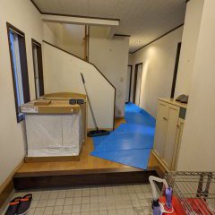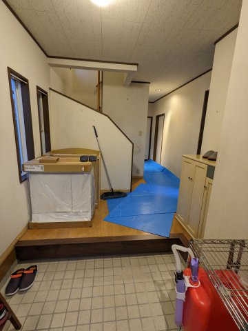 内装は壁はクロス貼替、床はフローリングの上にフロアタイルを上貼りしました。フローリングの貼替や上貼りより工期も金額も少なくおすすめです。
