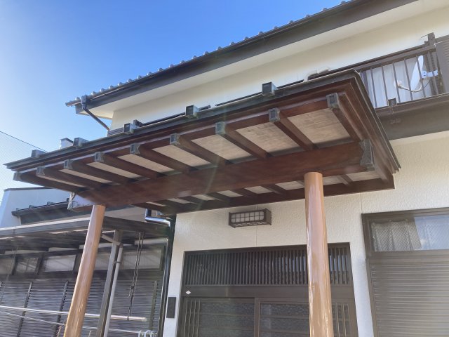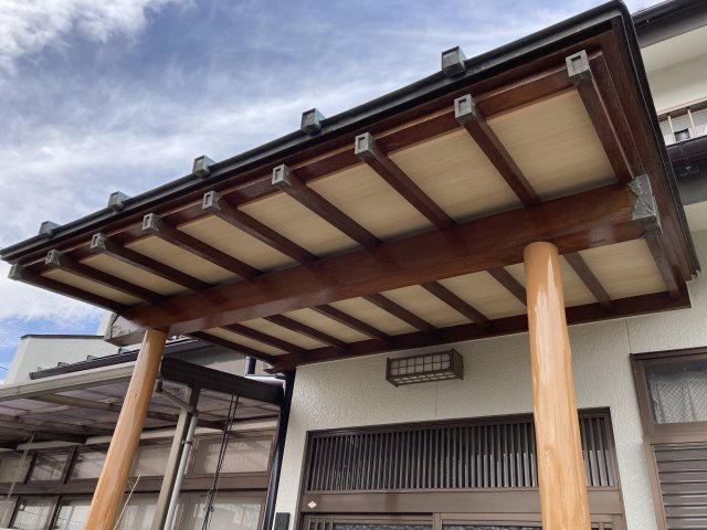 玄関の軒天が劣化して塗装しても原状回復が見込めなかった為、