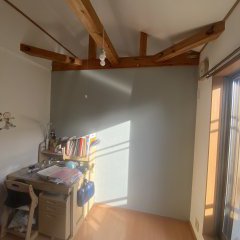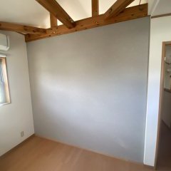 薄いブルーグレーの壁紙で落ち着いた明るいお部屋に変身しましたね。