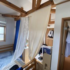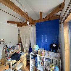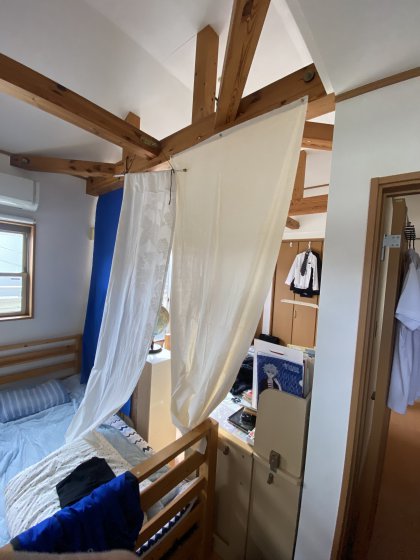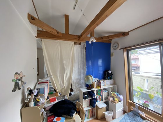 カーテンで仕切られた一つの部屋を間仕切りで独立させました。