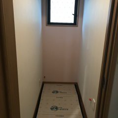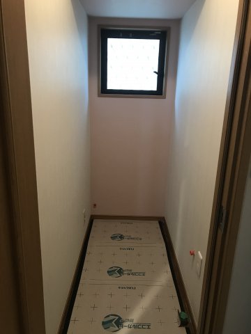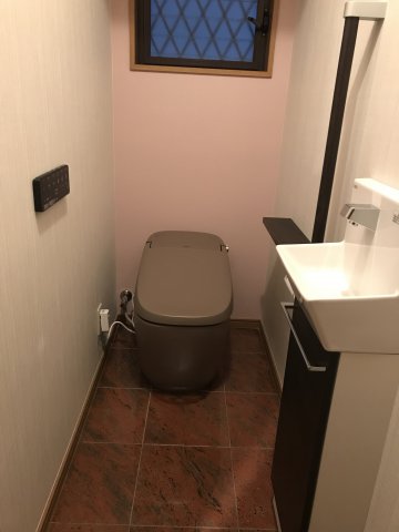 壁と天井のクロスを貼り替えましたが、アクセントのピンクがトイレのブラウンと相性がよく素敵です✨