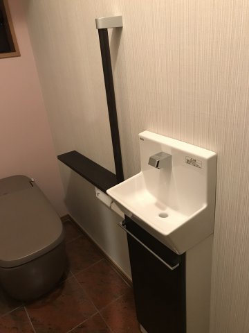 手すり付きの紙巻器カウンターもつけてカラーを合わせたのでお部屋に一体感がありますね~