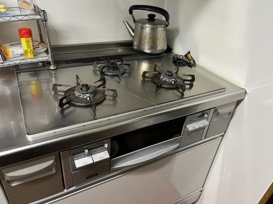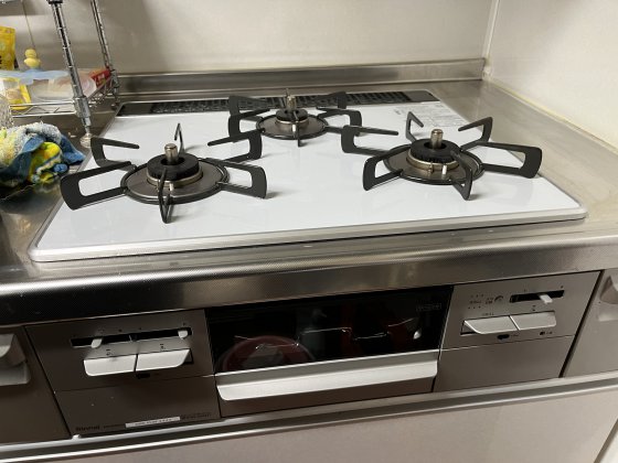 新たに設置したコンロは、リンナイのマイトーンです。 お色はシルバー 60㎝ パールクリスタル 天板が明るくて、キレイな感じがします。