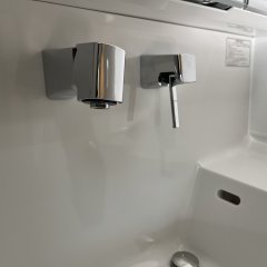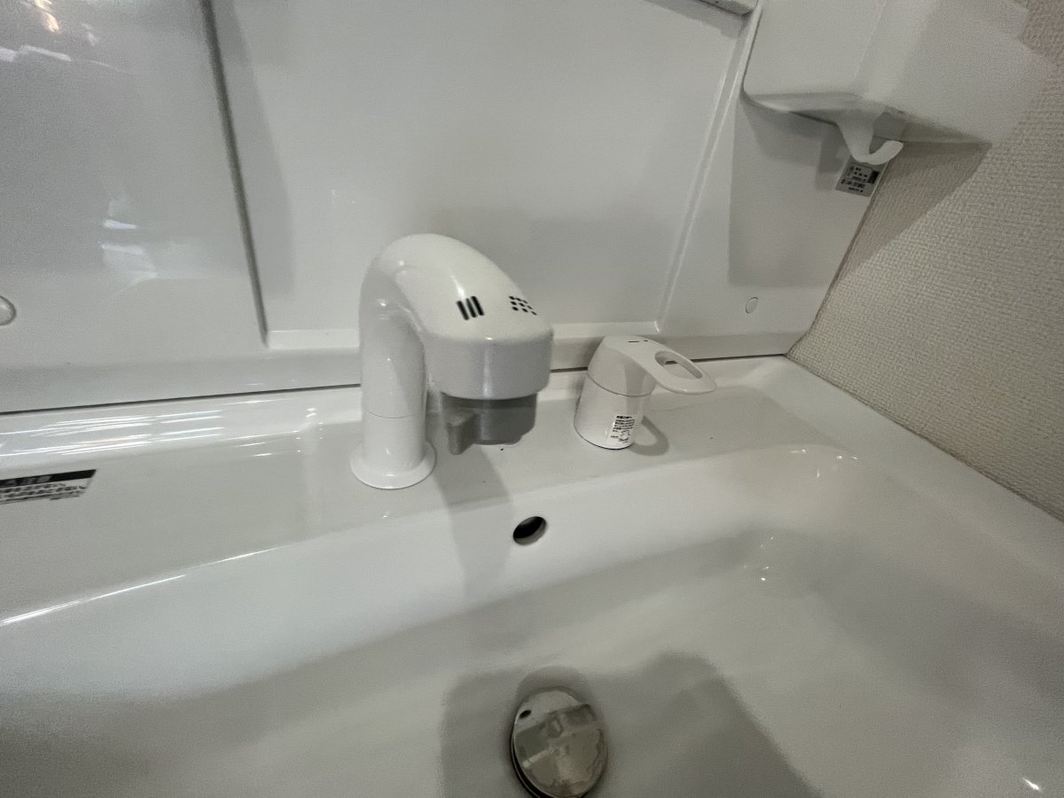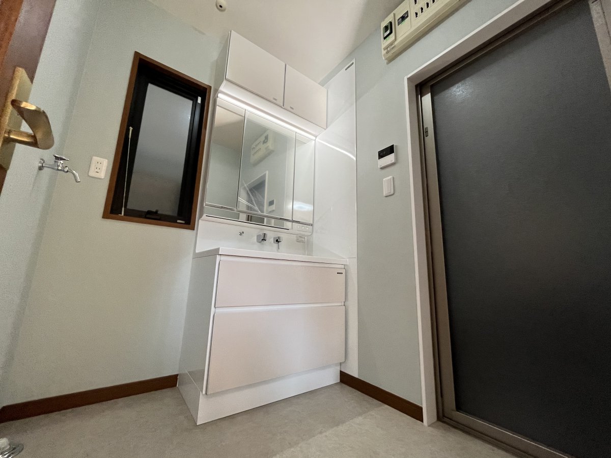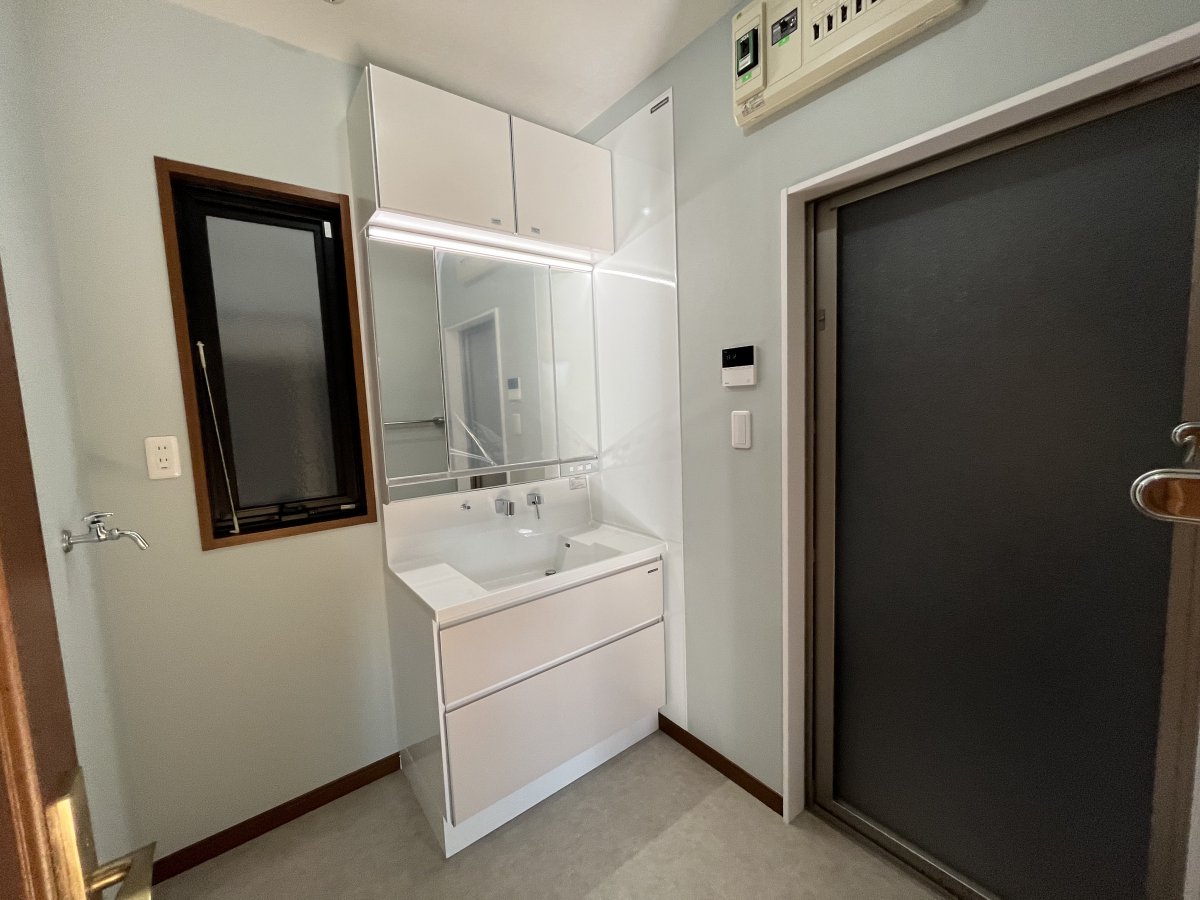 タカラの特徴であるホーロー素材の洗面台なので、今までの木製洗面台と違って