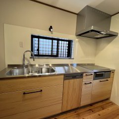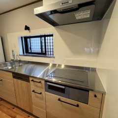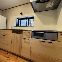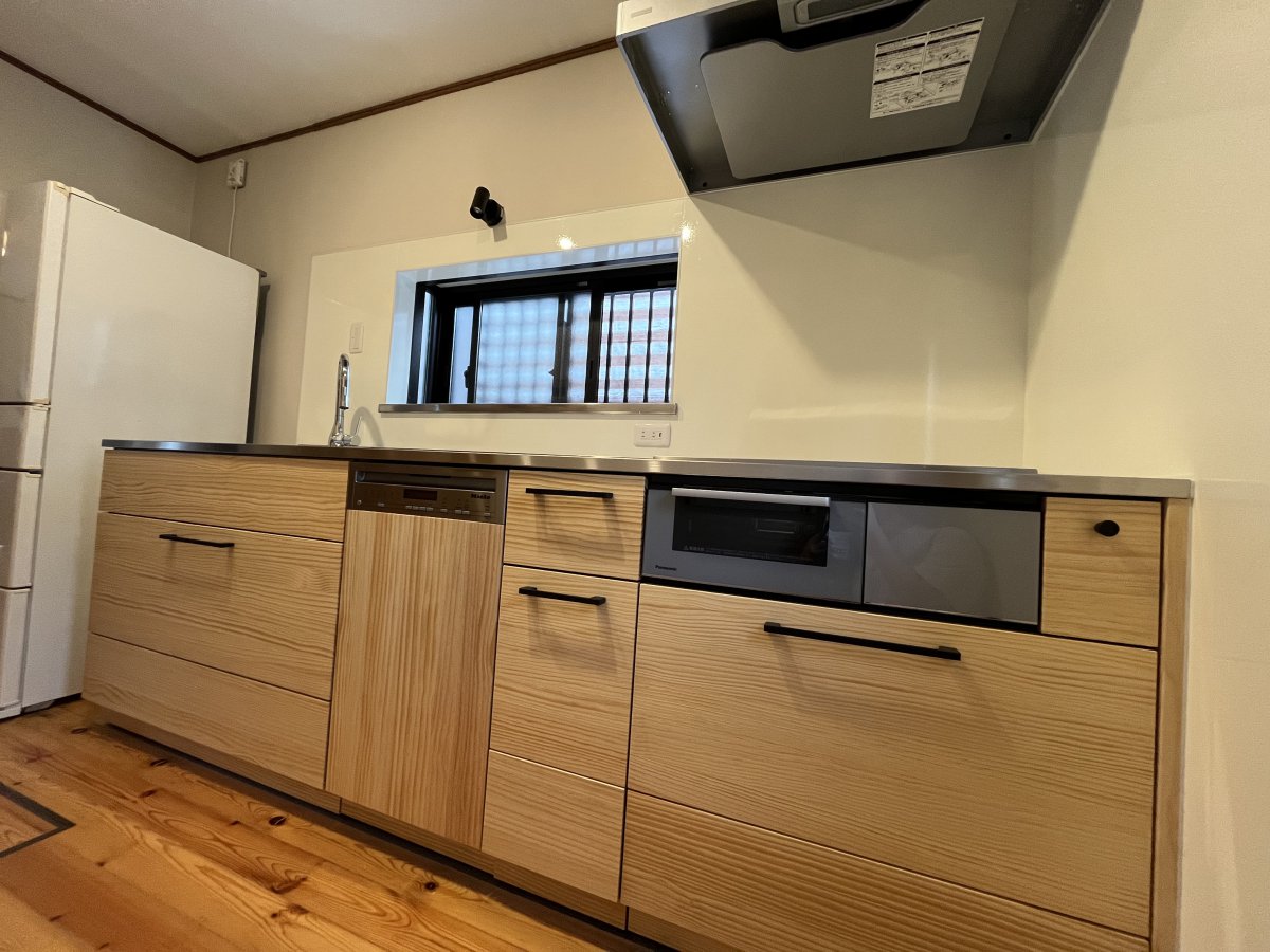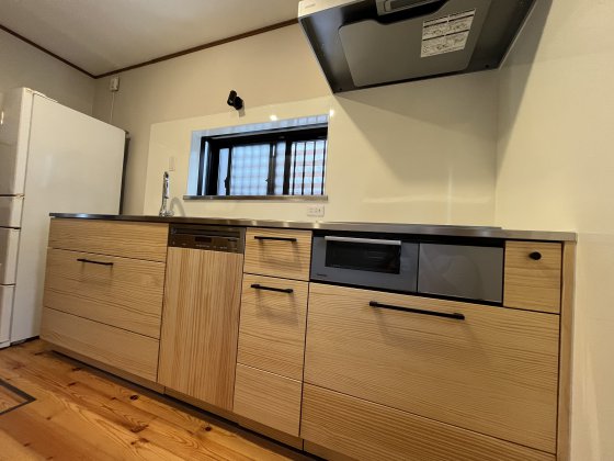 無垢材をふんだんに使用した暖かいキッチンの完成です