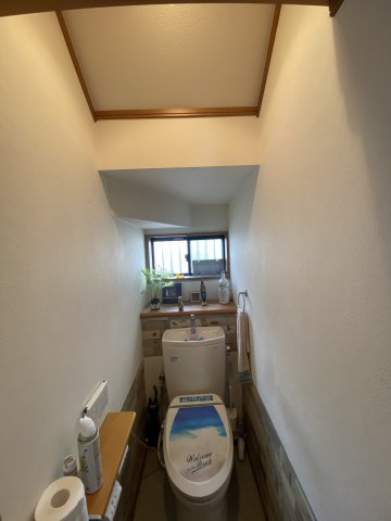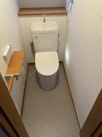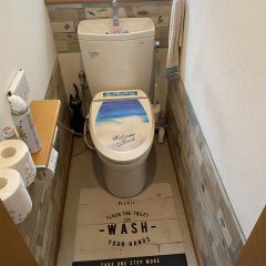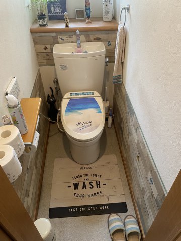 ●レストルーム改修 TOTOピュアレストQR タンク、手洗いあり 内装パック(天井、壁→クロス貼り 床→クッションフロア)