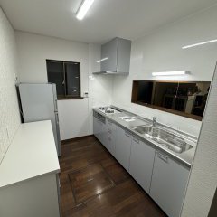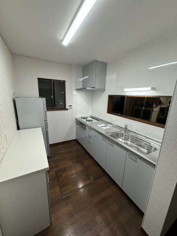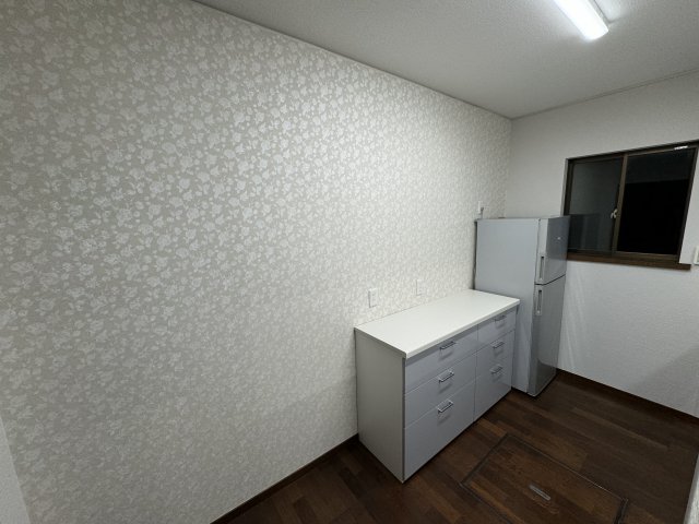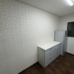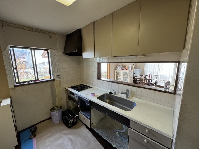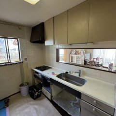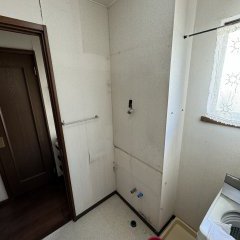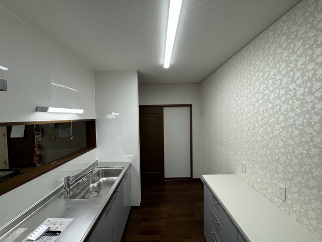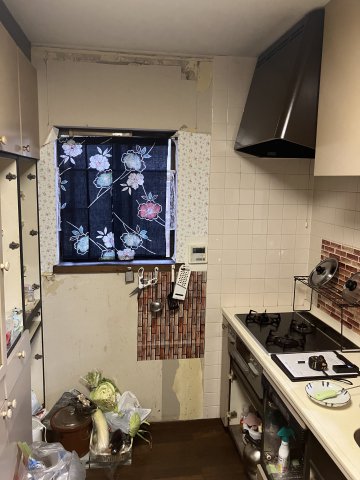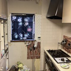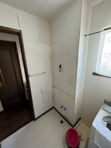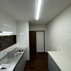 内装工事:キッチンの天井・壁クロスの張り替え。工事期間中に脱衣場の天井・壁クロスの張り替えもご依頼頂きました。