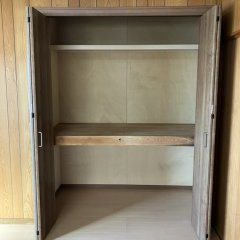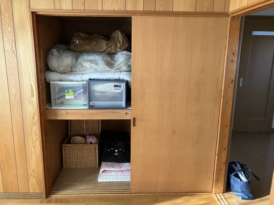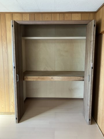 クローゼットタイプをご希望されていたので今より大きくなりますが、既製品サイズで交換しました!中の収納は枕棚を追加で取付しました。中の広いスペースもたくさん活用できそうですね☺押入の床は上張りした床とフラットにしたので、お掃除や収納する際にもストレスフリーです!