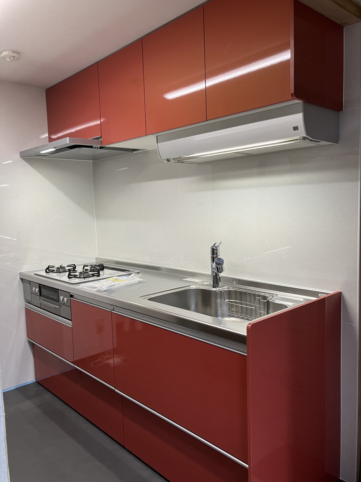 キッチンの赤が華やいで毎日の料理が楽しみですね。