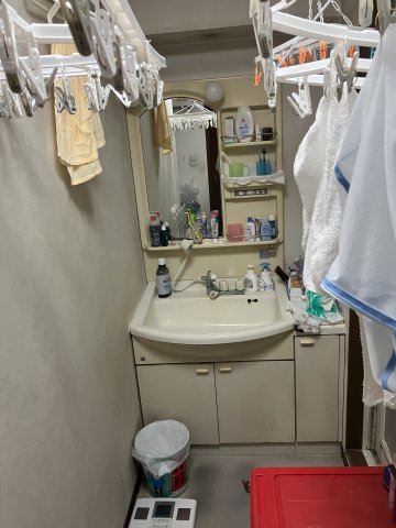 ☆洗面脱衣所 TOTO/オクターブⅬite 3面鏡、トールキャビネット、タッチレスときれい除菌水でいつも清潔 壁、天井クロス貼り 床クッションフロアー貼替