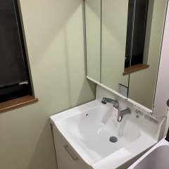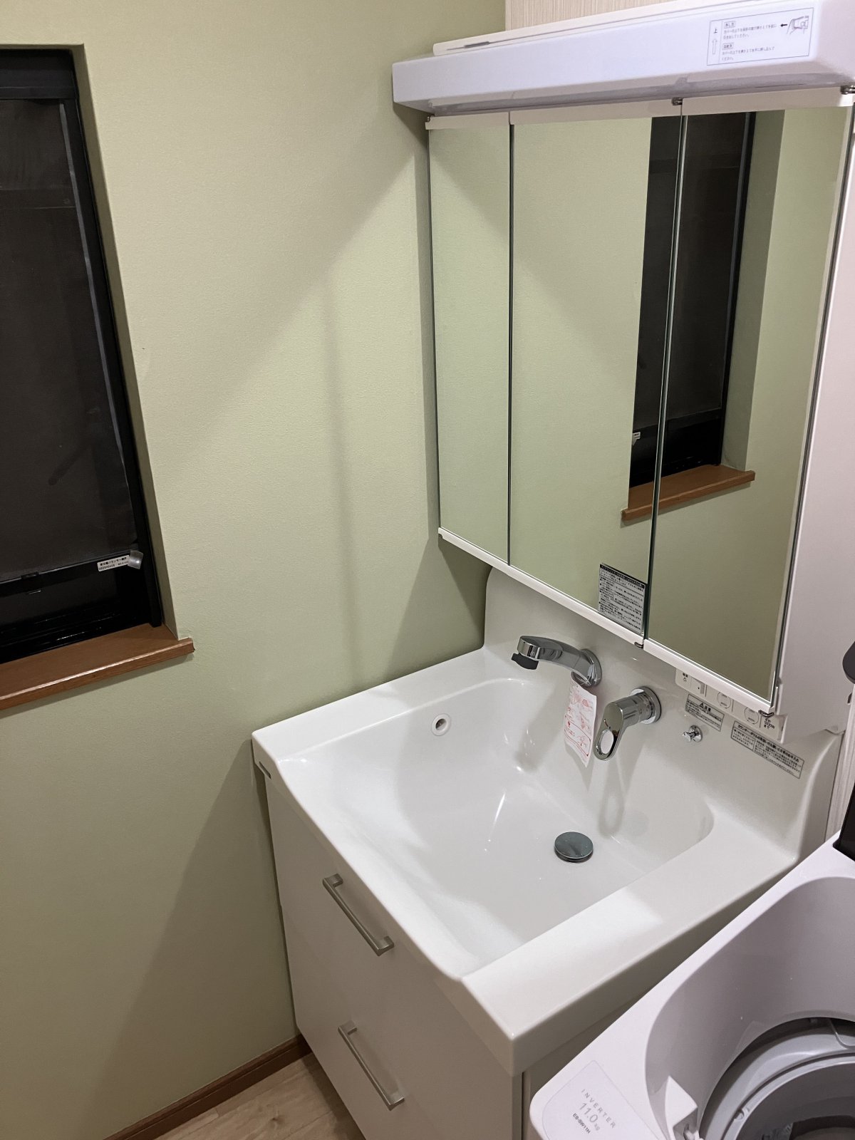 洗面室のリフォームをさせていただきました 工期は1日✨ 壁紙・床のシートを貼り替えて、新しい化粧台をお取り付け 今回はトクラスのエポックを採用していただきました。