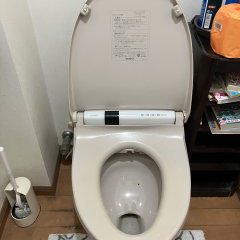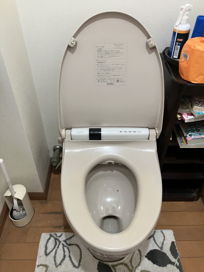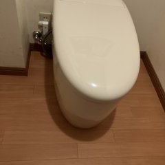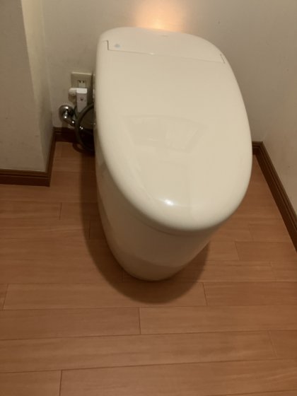 TOTO ネオレスト RS3 新しいトイレを設置する前にフローリング調のクッションフロアを施工しています やわらかライト搭載で夜も落ち着いて利用できますね✨