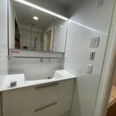 - 洗面台のマグネットパネル: 洗面台の左右にマグネットパネルを取り付けました。これにより、磁石がくっつくため、アクセサリーや小物の収納が便利になり、お掃除もしやすくなりました。