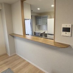 閉鎖的だったキッチンですが、シンク前面の壁を取り払うことで開放的にし、